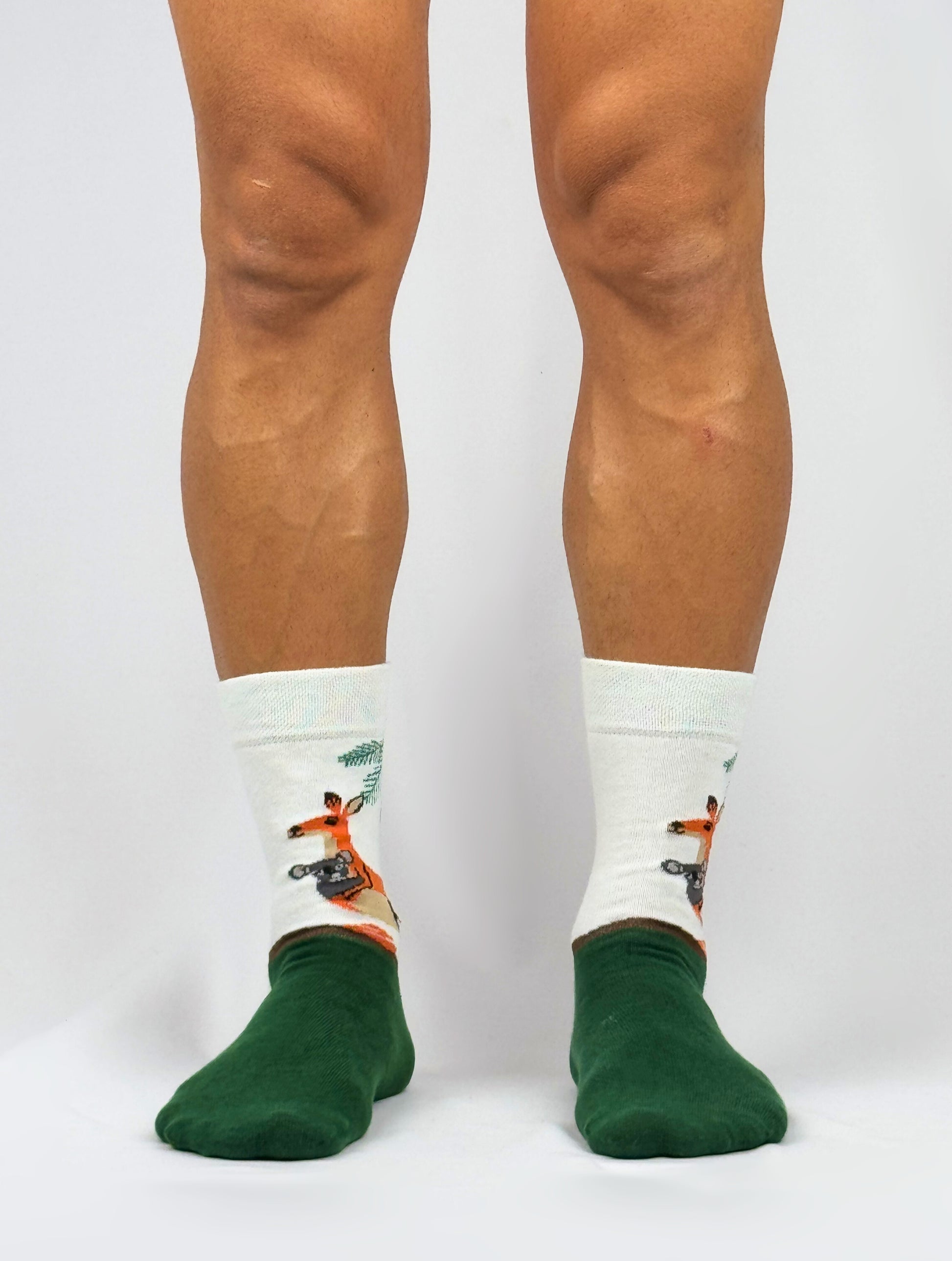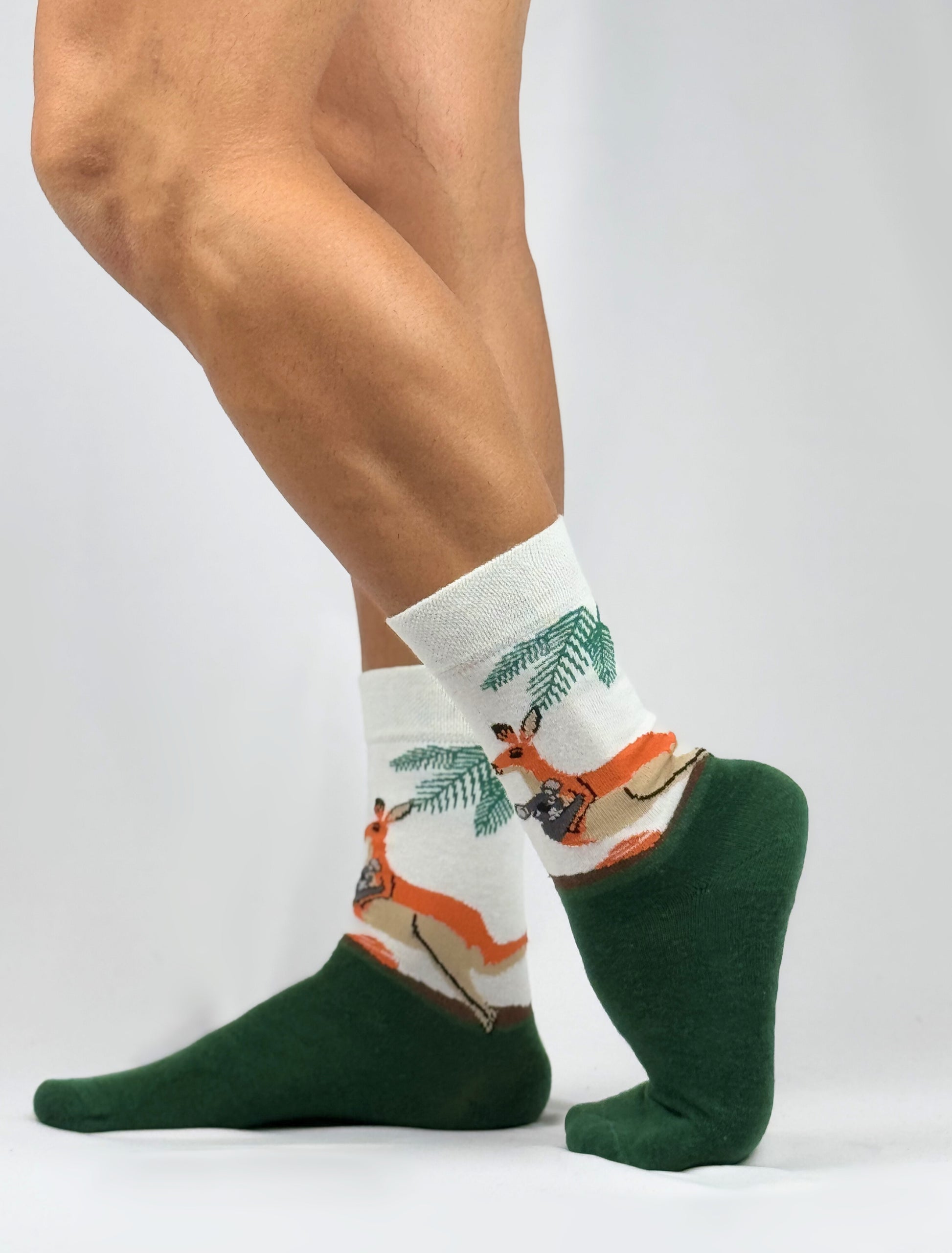 All aboard the "Koala Taxi" with these adorable socks, starring a kangaroo chauffeur carrying a happy koala passenger! These dark green and white socks make a great gift for koala and kangaroo fans.